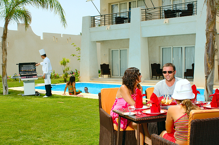 9 Royal Villas (500 кв.м) - 1 этаж – гостиная, оборудованная кухня, 2 спальни с дверью, 2 ванные комнаты, джакузи, бассейн, собственный гараж, сад; 2 этаж – 2 или 3 спальни с дверью, 2 ванные комнаты. Максимальное количество проживающих: 10 человек.