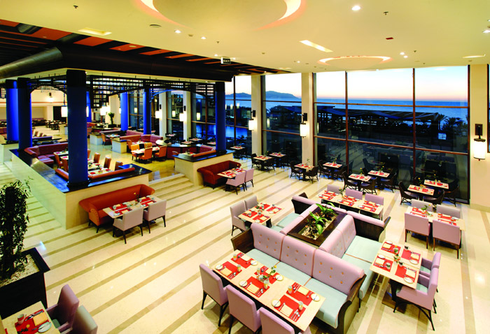 | Поехали мы в отель уже накануне прочитав не радужные отзывы, поэтому заранее были насторожены. Что касается территории - она и правда очень большая! Поделенная на множество разных зон: детская зона с бассейном, с маленьким корпусом, оснащенным различными игрушками, книжками, дисплеями для просмотра мультиков и приятными молодыми русскоговорящими нянями; большой главный бассейн (без подогрева); теплое джакузи под открытым небом с видом на море и запрещенным входом для детей; теннисный корт; площадка для волейбола; и множество маленьких островков с шезлонгами, где можно уединенно позагорать! Понравилось разнообразие в выборе проведения вечера: Лобби-бар, кафе под открытым небом, дискотека, восточный ресторанчик с кальянами, ресторанчик с пищей гриль, площадки со столиками которого находятся над морем; и некоторые анимации в амфитеатре под открытым небом. Территория очень интересная и красивая! Сам холл оставляет желать лучшего, несуразные коврики жуткого цвета, безвкусные люстры. Номера очень примитивны, но со всем необходимым и даже чайник с пакетиками кофе, чая, сливками и сахаром. Что касается еды, то это ужас! Однообразие, маленький ассортимент и качество на троечку. На третий день пребывания питались в ресторанчике на море! Еда там превосходная, все готовится на углях! Очень рекомендуем! Мы выходили сытые и счастливые, цены вполне нормальные! Очень остались довольны бесплатными тренажерным залом и сауной. В целом, впечатления остались самыми благоприятными! |