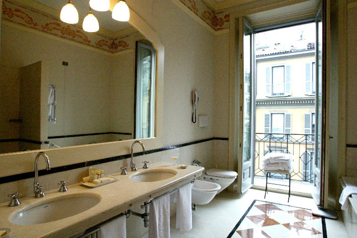 Deluxe Rooms (24-32 кв. м) - состоит из спальни с king bed или twin beds, большой ванной комнаты, отделанной мрамором, двух раковин, небольшого уголка-гостиной. Вид на внутренний двор или на Via Manzoni. Может быть соединен с Junior Suite.