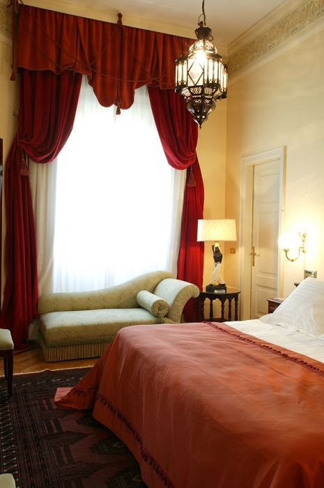 Внутри отель отличается своей изысканностью благодаря пленительной атмосфере старины, номерам, элегантно обставленным мебелью разных исторических эпох и предметами искусства, связанными с историей отеля, паркетному полу и просторным ванным комнатам, облицованным итальянским мрамором. Благодаря трепетному и скрупулезному вниманию, которое уделялось внутреннему убранству на протяжении веков, отель прочно занимает первое место среди прочих красивейших современных гостиниц. Отель предлагает разнообразные номера — от апартаментов, обставленных подлинной мебелью разных исторических эпох, до комнат, имеющих, напротив, современный интерьер. Представлены также номера, отделанные в эклектическом стиле. Недавно проведенная реконструкция отеля позволила модернизировать помещения без нарушения их самобытного очарования и привлекательности.