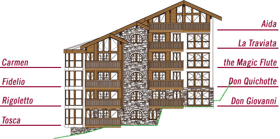 Шале состоит из девяти комфортабельных апартаментов класса люкс, каждый из которых имеет свое название: