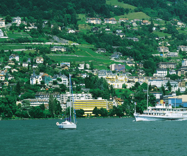 на берегу Женевского озера, в 10 ходьбы от вокзала Монтрё, в 1 часе езды от международного аэропорта Женевы, в 50 минутах езды от города Эвьян.