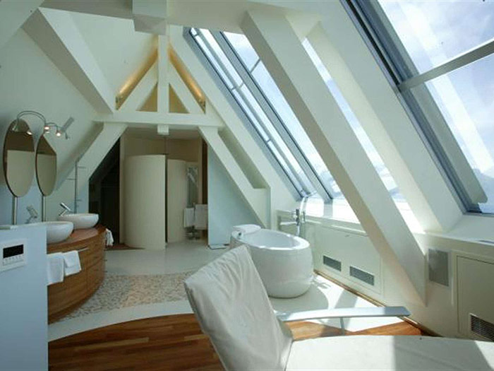 Duplex Suite Lake View (119 кв. м) - двухуровневый номер. Балкон, гостиная, мини-кухня, спальня, ванная комната с джакузи и отдельной душевой кабиной. Дополнительно: кофемашина. Вид на озеро и Альпы.