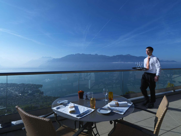 в центре виноделия на склоне горы Мон-Пелерин, возвышающейся над долиной Веве, рядом с Женевским озером, в 50 минутах езды на автомобиле от Женевы, и в 15 - 20 минутах от Монтрё и Веве. В 200 м от отеля находится фуникулер, который спускается в Веве.