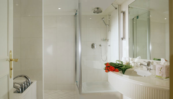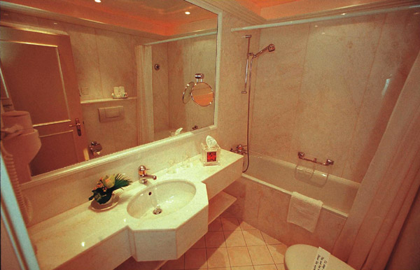В номерах установлены удобные рабочие столы с принадлежностями для бизнеса; также - новые ванные комнаты с ванной и душем, отделанные белым мрамором.