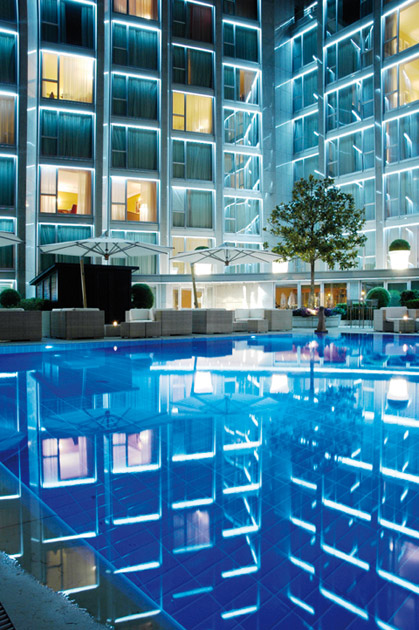 Отель бережно хранит традиции гостеприимства, стиля и изысканности и идет в ногу со временем, чтобы обеспечить своим гостям самое комфортабельное проживание и отдых. Отель предлагает роскошные и с большим вкусом обставленные номера различных категорий, полностью оснащенные современными удобствами. Аспидная доска, кожа, белый оникс на стенах, инкрустация кристаллов Сваровски на полу, предметы искусства, созданные корейским скульптором Jae-Hyo Lee, листы серого серебра на потолке, мозаика из платины, большие плазменные экраны, люстра из жемчуга, созданная специально для отеля Mathieu Lustrerie - это все элементы холла отеля, который переделывали в течении 8 месяцев, чтобы клиенты могли насладиться утонченной роскошью и равновесием, которое создают форма и материя. Золотая капля, розовый жемчуг, свет, падающий какадом, волны, вода – это элементы новой концепции декорирования отеля. Вода и ее отражения, вода и свет, игры прозрачности – все словно приглашает и манит в далекие путешествия.