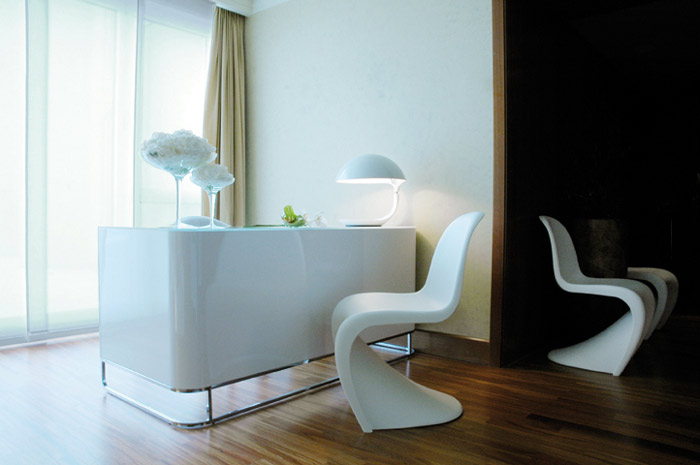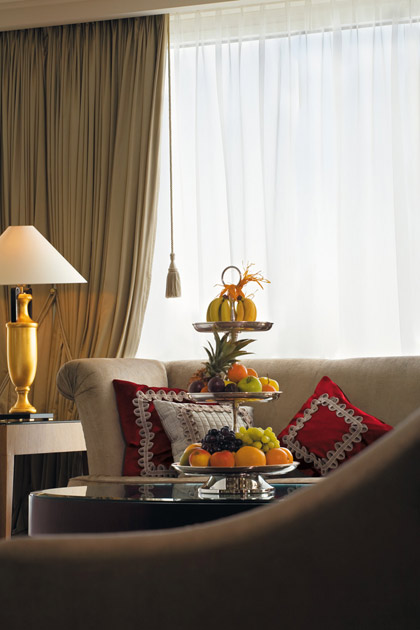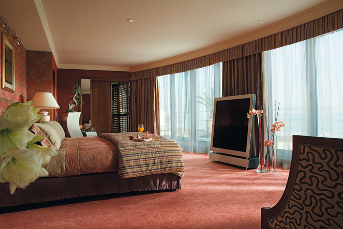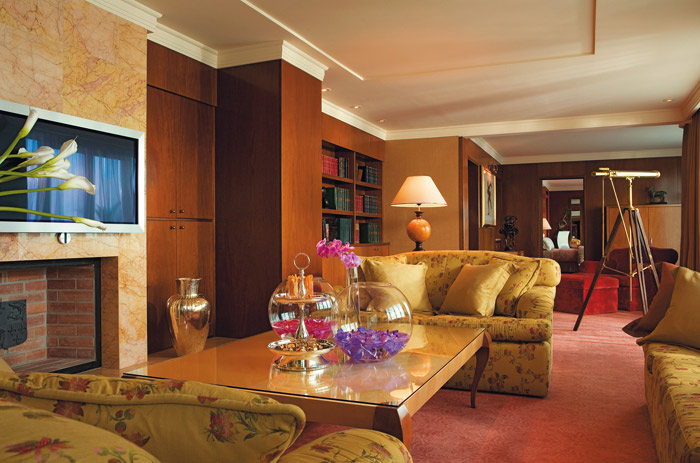 каждый номер включает в себя просторную гостиную с диваном, креслами, кофейный столик, письменный стол, LCD Bang & Olufsen телевизор и DVD проигрыватель