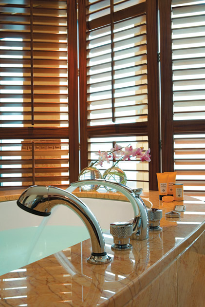 элегантные и просторные отделанные мрамором ванные комнаты, отделенный стеклянной перегородкой душ и двойной туалетный столик