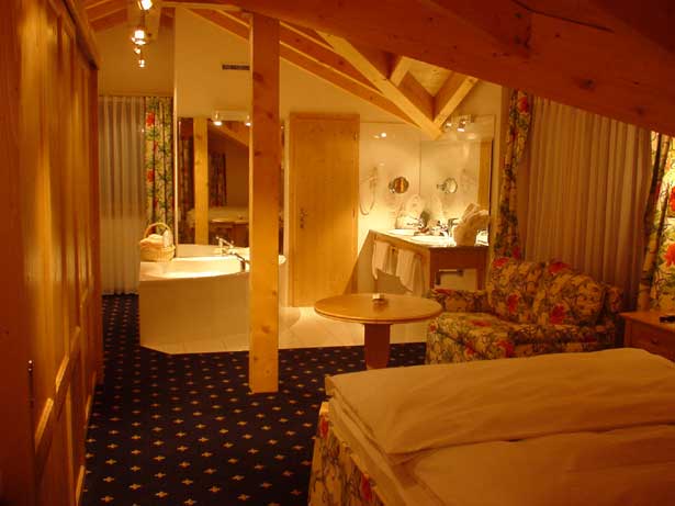 Junior Suite (38-55 кв.м.) — вид на горы, состоит из просторной спальни с зоной гостиной, ванной комнаты с ванной, отдельной душевой кабины, балкона, есть камин или ванная whirlpool