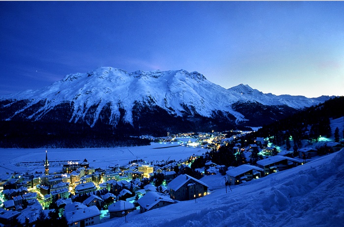 в центре курорта Санкт-Мориц, на берегу одноименного озера, на высоте 1856 м над уровнем моря, в нескольких минутах ходьбы от ближайшего подъемника, в 3 часах езды от аэропорта Цюриха.