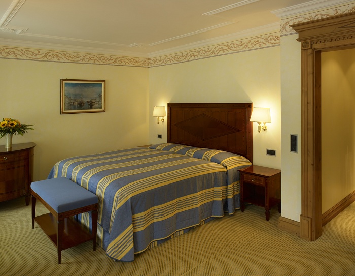 Luxury Suite - самые роскошные номера в коллекции отеля. Они декорированы в изысканном стиле с использованием эксклюзивных материалов и оборудованы с абсолютным комфортом, гарантирующим незабываемый отдых. Номера состоят из одной или двух комнат и отдельного салона с обеденным столом и в некоторых номерах - камином. Имеется балкон с видом на озеро.
