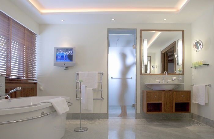 Privacy Suite 544 (90 кв.м.) - комфортный номер состоит из спальни и гостиной с паркетным полом, деревянным потолком, выполненным в деревенском стиле, дизайнерской ванной комнаты с отдельными ванной и душем. Обращен на северную сторону с видом на горы Corviglia.