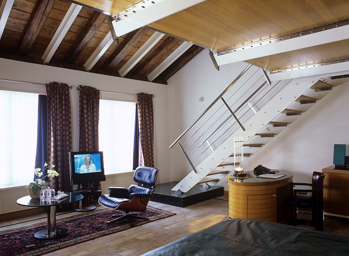 Гостей ждет настоящий оазис умиротворения и гармоничной красоты, где утонченный стиль и изысканная роскошь соотносятся с атмосферой тепла и уюта. Это ощущение защищенности и камерности создают лестничные пролеты, лифты, портики и внутренние дворики, которые зрительно объединяют в единый комплекс 9 полностью отреставрированных исторических особняков. Без сомнения, на любителей архитектуры и поклонников необычных дизайнерских решений этот отель произведет неизгладимое впечатление органичным синтезом исторической архитектуры и современного дизайна.
