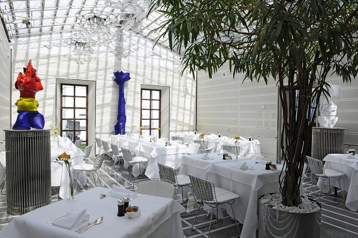 Здесь можно встретить предметы меблировки от самых известных мировых производителей и дизайнеров: Le Corbusier, Mies van der Rohe, Adolf Loos до Charles, Ray Eames, Eileen Gray, Josef Hoffmann, Frank Lloyd Wright, Mario Bellini и Harry Bertoia. Лобби, рестораны, конференц-залы и все гостевые номера украшает обилие предметов антиквариата, картин, скульптур и предметов искусства таких известных художников, как Аугустино Джакометти (Augustino Giacometti), Серж Поляков (Serge Poliakoff), Макс Билл (Max Bill), Энди Уорхол (Andy Warhol) и Софи Тойбер-Арп (Sophie Taeuber-Arp).