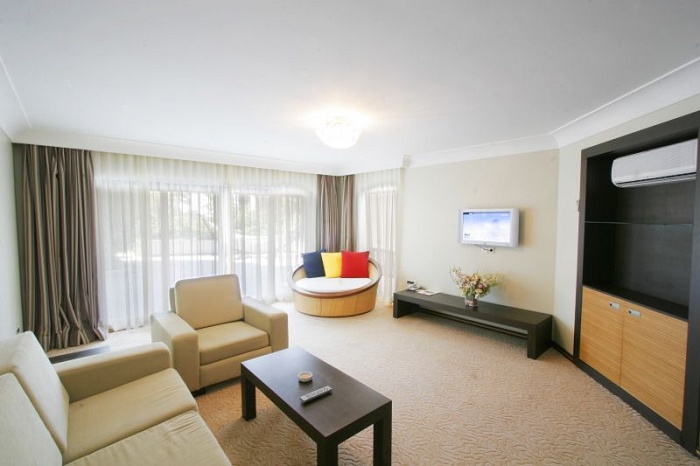 Дпя проживающих в Президентской вилле имеется отдельная сауна, джакузи и турецкая баня.