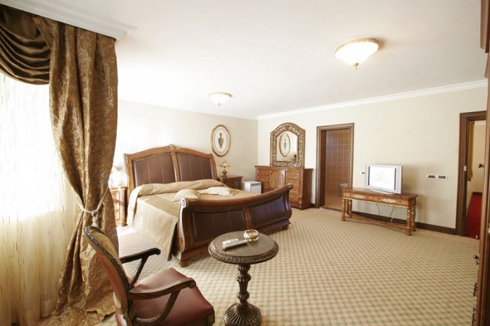 Одна из спален Президентской виллы оформлена в специальном стиле, отличающемся от других комнат. Она более обширна и соединяется с просторным кабинетом.