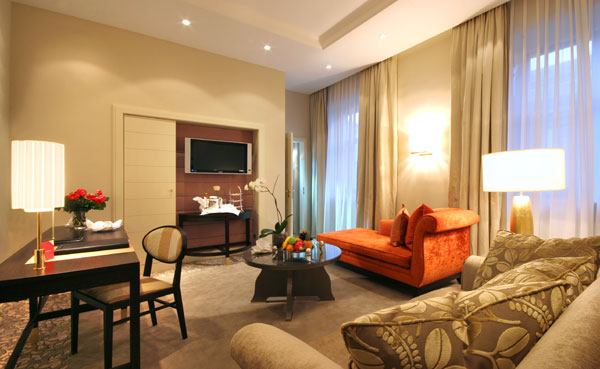 Deluxe Suite (100 кв.м) — расположен в старинной части здания; состоит из холла, просторной спальни, отдельной гостиной, ванной комнаты, гостевой туалетной комнаты.
