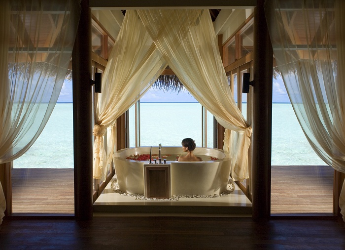 Sunrise Over Water Suite (132 кв. м ) - находится на сваях над водой, соединен с берегом деревянными мостками, состоит из спальни с кроватью king-size, гостиной зоны, столовой зоны, ванной комнаты с гардеробной, меблированной террасы со спуском в воду, душа на открытом воздухе.