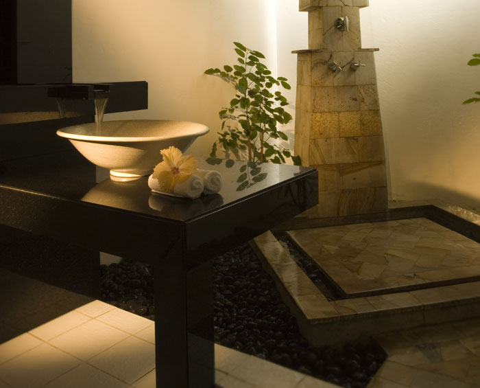 Каждая вилла сочетает минималистический современный дизайн. Из спальни можно пройти на веранду, чтобы оттуда любоваться красотой сада. У некоторых вилл есть джакузи, установленное на свежем воздухе.