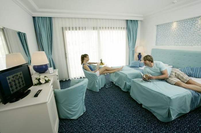 250 Standard Rooms Blue Life (38 кв. м) - 2+1 чел., спальня, ванная комната с ванной, балкон.