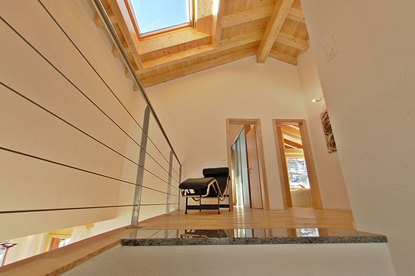 Шестикомнатные апартаменты Haus Crans занимают второй и чердачный этажи шале. Дизайн современный, в теплых тонах, с элементами модерна, много свободного пространства.