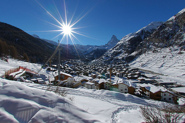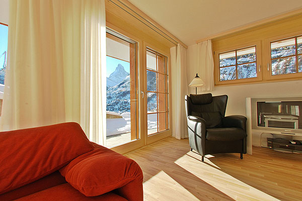 балкон на южной стороне, откуда открываются великолепные виды на пик Маттерхорн