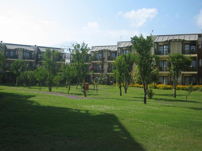 На территории есть пруд, там рыбки плавают и лягушку квакают. Очень интересно на это смотреть и слушать. Есть основное большое здание а остальное все бунгало 3-х этажные. Ни где не упоминается что у этого 5-ти звездочного отеля есть через дорогу 4-х звездочный. Изначально если вам предложили бунгало – радуйтесь. А было очень и очень много случаев, те кто хочет чтобы ему дали номер в основном здании, сначала ему дают номер в 4-х здездочном на сутки или двое, а только потом переселяют в основное здание. В бунгало есть три разных видов номера. 1) это очень маленькая комната без балкона, в которой даже одному места мало. 2) это комната большая, хорошенькая очень там шкаф, ТВ, телефон, тумбочки, столик, кресло. Санузел ванна, раковина, туалет. В общем нормальный номер. 3) похоже на 2-е, только на два метра больше. В этой как правило живут 3 человека. Двое взрослых и малыш.
