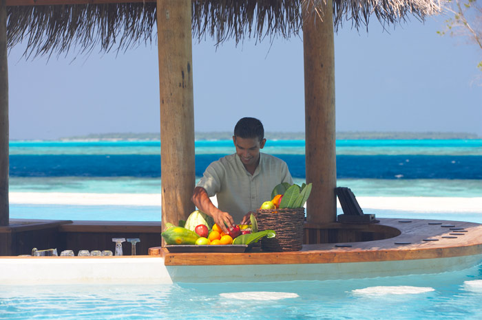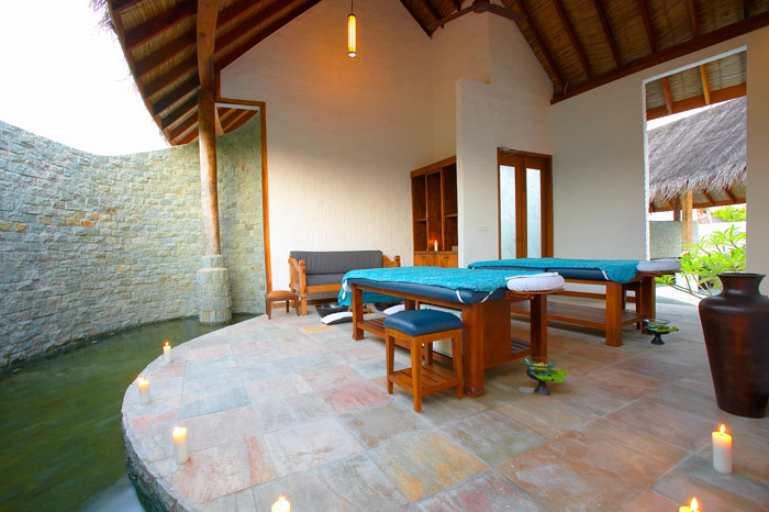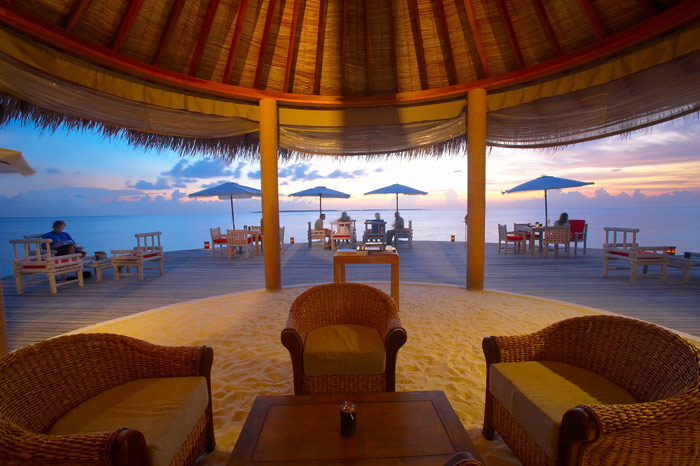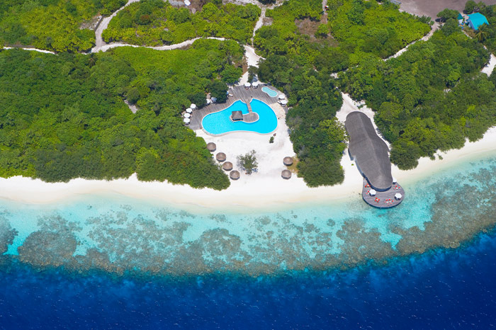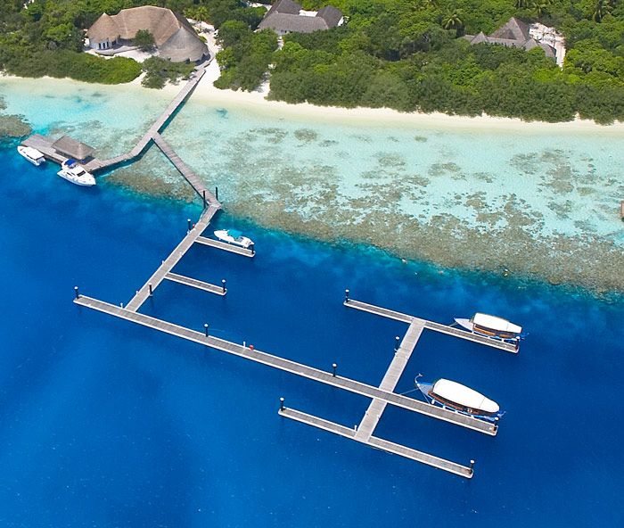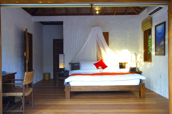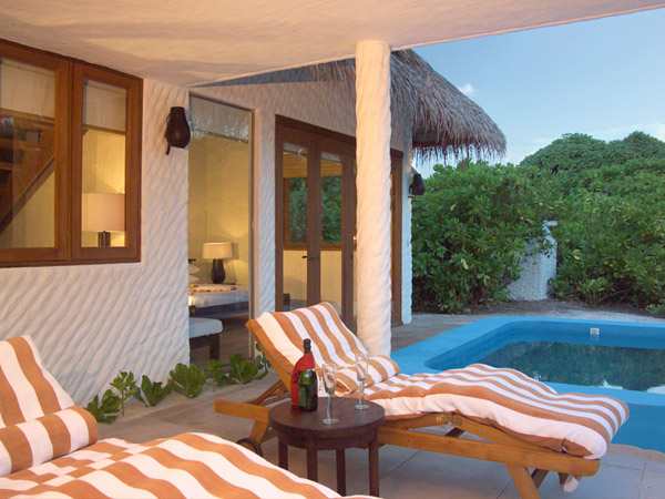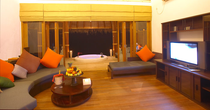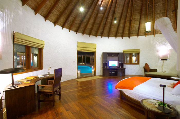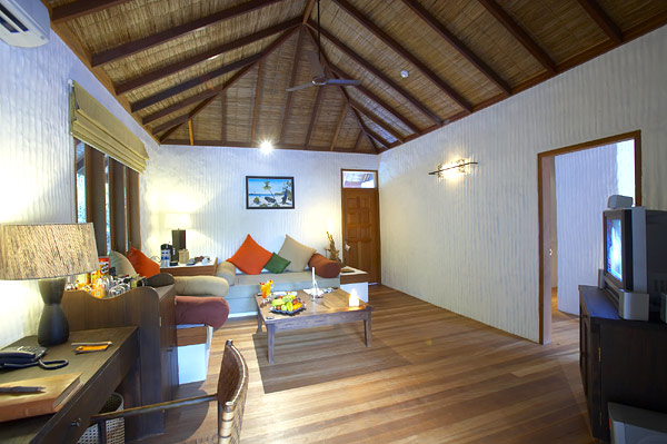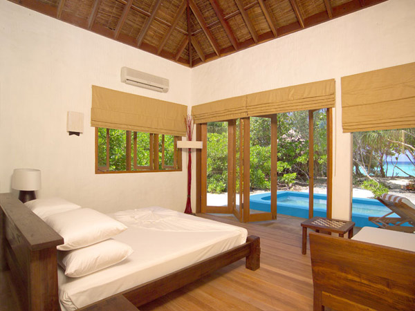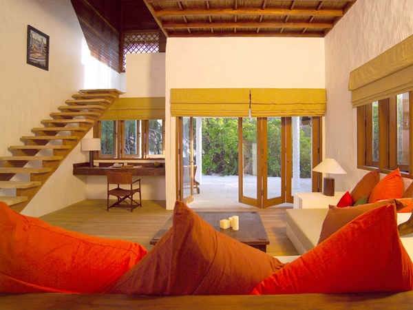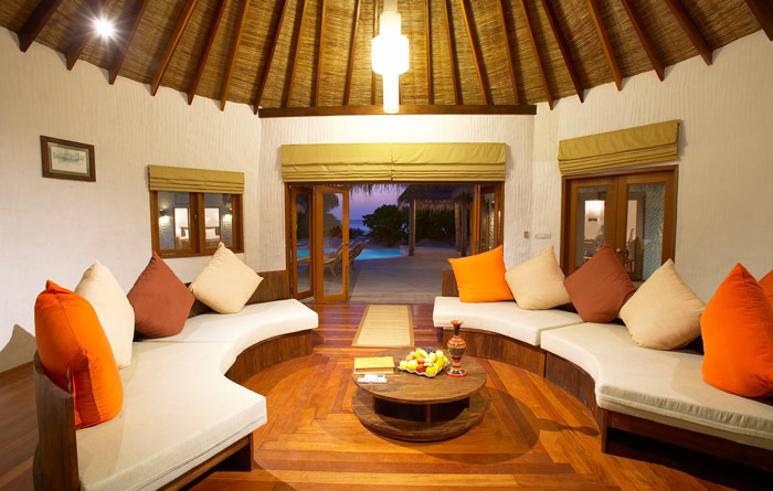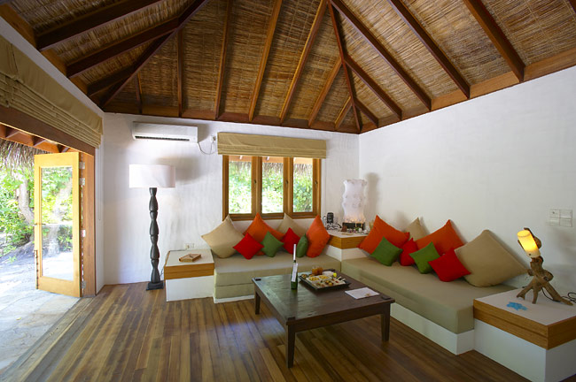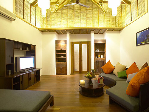 Просторные двухэтажные виллы, крытые тростниковыми крышами, окружены буйной тропической зеленью, имеют собственный выход к океану, располагают частными бассейнами, открытыми ванными комнатами и террасами. Дизайн вилл очень интересен: типичные для Мальдив деревянные открытые беседки для отдыха, обилие дерева и обязательное включение водного элемента в архитектурный ансамбль, создающее впечатление полной гармонии с окружающей средой.