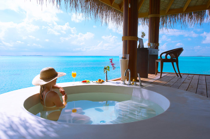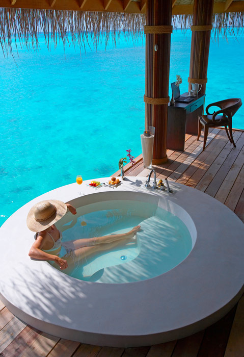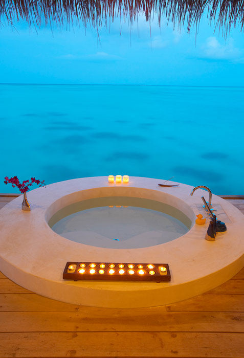 Hideaway Water Suite (235 кв. м) — оотдельно стоящие водные бунгало, расположены на сваях рядом с Spa-центром, состоят из спальни, гостиной, террасы, ванной комнаты, собственного SPA-павильона, сауны, парной, бассейна с джакузи.