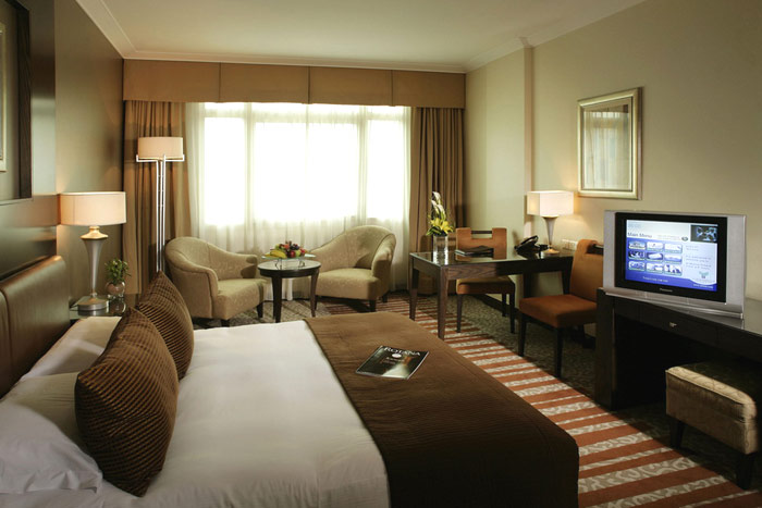 Club Rotana Premium Room (44 кв.м) - номер с видом на город, с кроватью King, двумя креслами и журнальным столиком, двумя телефонами, с рабочим столом и двумя стульями. В ванной комнате - ванна и биде.