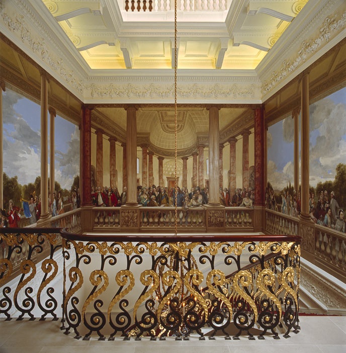 Изогнутая лестница с фигурной металлической балюстрадой ведет на второй этаж, где взору гостей открывается великолепная галерея, украшенная огромной фреской. Автором фрески является китайский художник Мао Вен Биао (Mao Wen Biao). Благодаря ему фреска заняла центральную часть холла и стала неотъемлемой частью William Kent House. Фреска разместилась на трех стенах и отображает лондонскую жизнь William Kent House XVIII века. В голубом костюме в самом центре фрески можно увидеть самого архитектора Вильяма Кента.