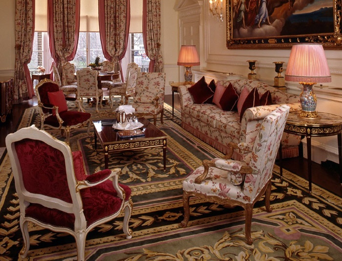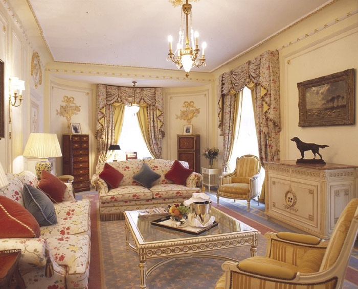 В роскошных номерах, выполненных в теплых фирменных тонах (голубой, персиковый, желтый), прекрасно сочетаются интерьеры в стиле Людовика XVI, самые современные технологии и непревзойденный дизайн: изысканная антикварная мебель, декоративные панели, украшенные золотыми листьями, канделябры и бронзовые настенные подсвечники подчеркивают королевский стиль, а старинные картины, расшитые вручную шторы из шелковой тафты придают величественность каждому из номеров с высокими потолками и огромными окнами с прекрасными видами на центр Лондона. Из окон отеля открывается восхитительный вид на Королевские сады Грин-парка и на Букингемский дворец.