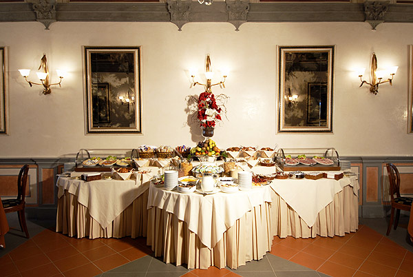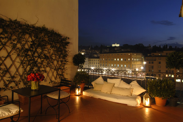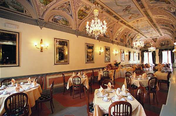 Из широких окон гостиницы и потрясающего сада на крыше (Roof garden) открываются превосходная панорама города и захватывающие дух виды на культурные сокровища Флоренции: Старый мост Понте Веккьо, дворец Палаццо Веккьо и, конечно же, возвышающийся над крышами флорентийских домиков купол Санта Мария дель Фьоре. Зал для завтрака украшен фресками XIX века и выходит окнами на реку Арно и el Ponte Vecchio.