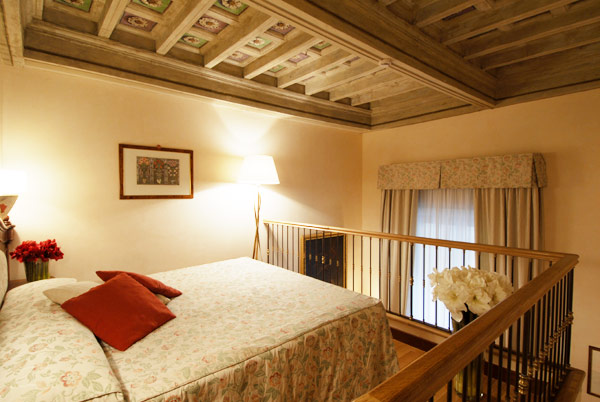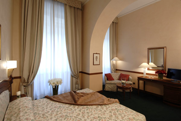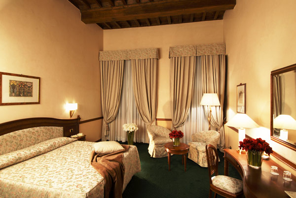 Номера оснащены всеми удобствами и элегантно обставлены в классическом стиле. Из окон открываются виды на Старый мост Понте Веккьо с ювелирными лавками, дворец Палаццо Веккьо, купол Санта Мария дель Фьоре и крыши флорентийских домов. Ванные комнаты 23 номеров оборудованы ванными, 19 – душевыми кабинами.