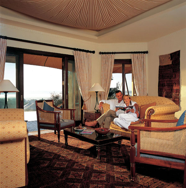 Изысканные бунгало с частными бассейнами внешне напоминают традиционные шатры. Здесь ничто не мешает наслаждаться тишиной, покоем и завораживающей панорамой песчаных дюн и дальних гор. С тенистой террасы можно увидеть идущих на водопой антилоп и газелей.