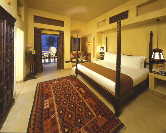 16 двухэтажных корпусов выкрашены охрой, их цвет сливается с цветом песков Аравии. Номера декорированы в восточном «cказочном» стиле и оснащены всеми современными удобствами.