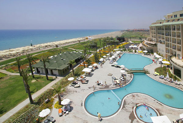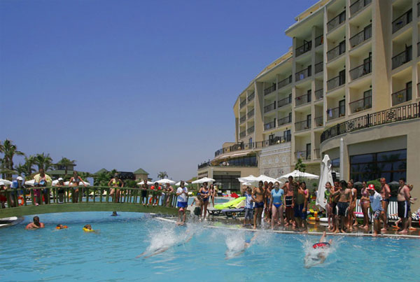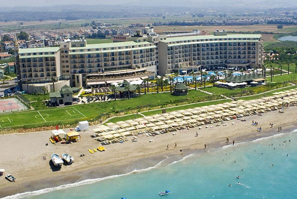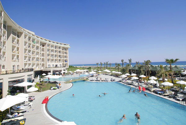 Путевку покупали в компании Инна Тур.Мы отдыхали в этом отеле с доченькой. Ей 5 лет. Нам понравилось всё. Мы жили в бунгало. Номер на большой, но очень уютный: большой балкон, две 1спальные кровати, над кроватью картина, 2 прикроватные тумбочки, шкаф, зеркало, трюмо, мини бар, телевизор. В туалете большое зеркало, фен, ванна. При заселении у нас оказался неисправен душ, отремонтировали в течении дня. Бассейны большие, чистят их каждый вечер. Есть водные горки (6 штук). Большой пирс с шезлонгами, большой чистый пляж. Аниматоры просто молодцы, не дадут скучать ни детям ни взрослым. Вечером интересные программы в амфитеатре. В столовой кормят отлично. МЯСО есть. Очереди бывают (редко), но стоишь в них не больше 2-х минут. Мой ребенок ел клубнику, арбузы и мороженое в неограниченном количестве. Очень понравились турецкие лепешки. Так что советуем там отдохнуть! www.inna.ru