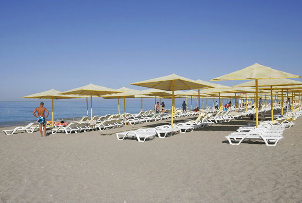Собственный пляж, песок. Зонтики, шезлонги, матрасы – бесплатно. Пляжные полотенца – залог. У бассейна: зонтики, шезлонги, матрасы – бесплатно.