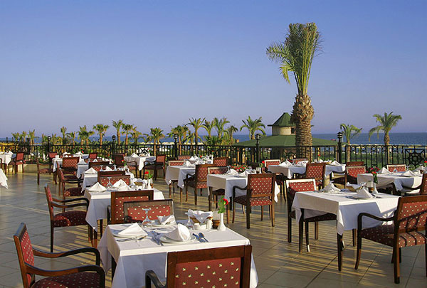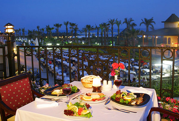 • Главный ресторан, где открывается удивительный вид на море, предлагает гостям шведский стол, в меню которого входят самые изысканные блюда турецкой и оттоманской кухни. В некоторые вечера гостям отеля предлагаются блюда разных регионов Турции. Ресторан предназначен для широкого круга посетителей. В нем так же предлагаются диетические блюда.