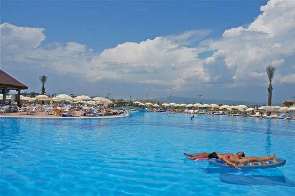 | отдыхали там с 23 мая по 6 июня.отель конешно не тянет на 5.скорей всего он тянет на 4. вначале нашего отпуска было 4 аниматара,но под конец нашего отпуска появилось еще два,и стало всего аниматоров 6.если отдыхать там с семьей,тогда отель вам подайдет,но а если вы любите ночную жизнь,вам отель не подайдет.а только потому-что в отеле работает не диджей а полное гавно.так сами дискотеки нормальные.просто там уже на дискотеки никто не ходил=из за диджея.лано раскажу как сам выгледит отель.он состоит из 3 маленьких домиков.2 маленькие водные горки.два бассейна,и детский,еще имееться крытый.вторая береговая лния-но там ходит маленький трактор который вас довезет до моря и на зад.пешком до моря идти 10 минут.кто поедит этим летом пожалуйста передайте привет аниматарам от тони и насти.не забудьте,очень прошу. | ||||