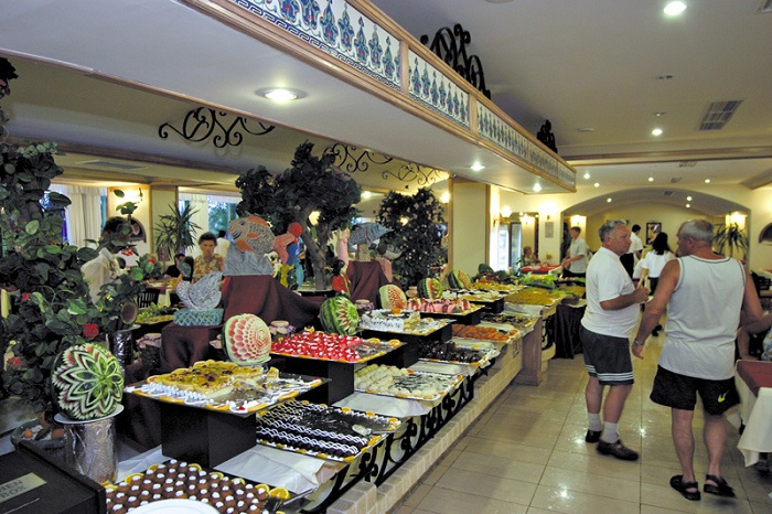 | Бич бою Хусейну отдельная благодарность-постоянно меняет урны, носит лежаки, правда иногда нужно заряжать его чаевыми. На пляже всегда чистота и порядок. Море чистое и спокойное часов до 16, потом прибивает водоросли к берегу и начинаются волны. Питание в отеле прекрасное, блюд 80 на выбор только на ужине. Также исправно работают бар у бассейна, лепешки на территории, бар на пляже. Вообще, обедать лучше оставаться на пляже-там более привычная еда для российских желудков. Самое ужасное в пище-майонез-есть вообще невозможно. Также кофе в автоматах очень крепкий, после 5 чашек становится плохо. Официанты работают постоянно, грязной посуды практически не увидишь. Анимация вечером потрясающая, на русском языке. Аниматоры (Джимми, Олеся,Кадир,Яко, Мусти(!!!-большой ему привет), Катрин, Джихан) работают целый день, развлекая людей на пляже(игры, гимнастика) и у бассейна(игры, водная гимнастика, танец живота и др.). Даже за обедом могут присоединится, по вашему желанию. После шоу-дискотека на пляже, там тоже всегда весело. Часто приезжали музыканты, была «турецкая ночь». Вообще, отель расчитан на разные категории, но больше, конечно, для семейных людей. Единственное, что испортило отдых-отельный гид Джавид. Не покупайте путевок, как бы вас не пугали! Вообще с ним лучше не связываться! Приятного вам отдыха в этом прекрасном отеле! |