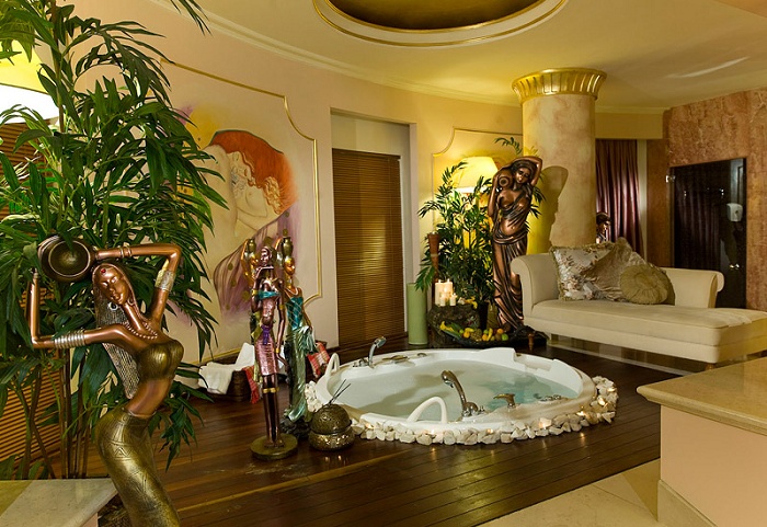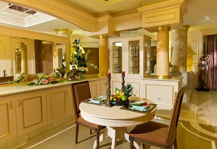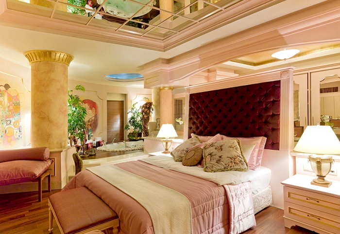 Pink Room Suite (100 кв. м) – номер для новобрачных. Состоит из комнаты округлой формы, разделенной на зоны: спальня, гостиная, кухня, комната для отдыха и джакузи. Отдельная ванная комната с ванной и душем, терраса. Гостям предоставляются VIP – услуги. Вид на море.