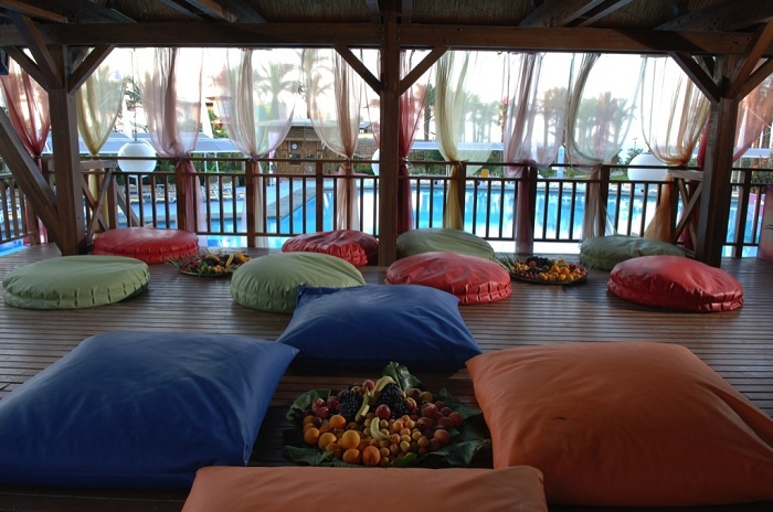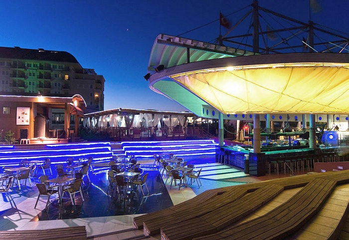 Езжу в Турцию каждый год на 2 недели в первой половине августа, в Риве Диве была в 2007 году. В первый раз не хотелось уезжать! Территория не большая, но всегда есть куда пойти. Питание отличное, нужно просто с первого дня узнать где что дают и когда. Из еды есть все - мясо, рыба, курица, овощи, фрукты, свежевыжатые соки. Я в полном восторге от отдыха! Очень повезло с аниматорами - профессиональная команда молодых ребят из Киева. С ними и шоу на высшем уровне и дискотека. Раз в две недели пенная вечеринка, молодежи достаточно. Ночью можно заказать еду в номер, беплатно. Приносят супчик, большой сэндвич и картошель фри. В обеденном ресторане можно подкрепиться до 2 ночи. Мне 19 лет, ездила с двумя друзьями, мы по полночи не спали, поэтому еда в номер была очень кстати. Бар нас тоже не огорчал. Через 2 дня после нашего приезда появилась текила и меню с фирменными коктейлями. За небльшие деньги можно покурить очень неплохой кальян. На пляже песочек, сам пляж большой и широкий. На пирсе стоят шатры, только их нужно занимать рано. А на самом пляже проблем с лежаками нет. В нескольких метрах от выхода из отеля стоит огромный торговый центр. Часть его занимают обычные турецкие лавочки, а другую, охраняемую, - магазины и бутики с оригинальными вещами. Мы из отеля никуда не выезжали, да и какой смысл? Все развлечения внутри, отличная дискотека, тут же появилась своя компания, магазины с шарфиками, сувенирами и прочим прям под рукой.
