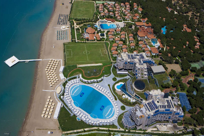 в 35 км от аэропорта, в 40 км от центра г. Анталья, в 5 км от поселка Кадрие, на самом берегу моря.