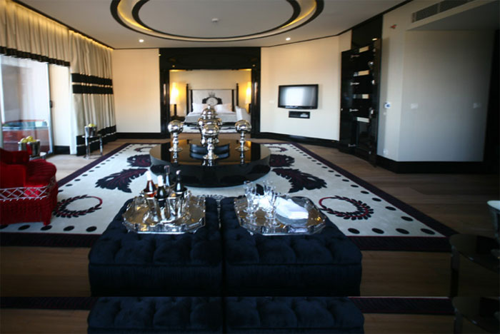 3 King Residence Suite (640 кв. м) - декорированный золотом номер с видом на море, гостиная с обеденной зоной, от 2 до 5 спален c дверьми, 7 ванных комнат, терраса с джакузи, макс. 10 чел.