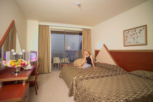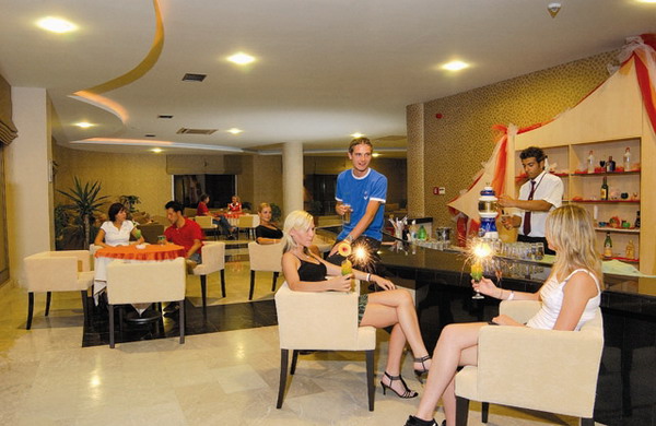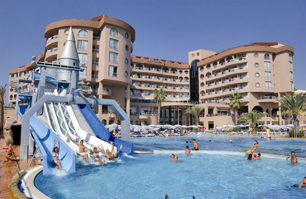 | Отдыхали с мужем 11.06-25.06.2008, ездили в свадебное путешествие. Сама в Турции была 5 раз, но такого ужасного размещения еще не встречала, и, поверьте, никак не ожидала, что придется нормальный номер “выбивать” в пятерке. Ездили через TezTour. По приезду в отель номер дали быстро, правда, супер маленький, на 5-ом этаже с видом на поселок, мебель, предназначенная для нормального номера едва вмещалась, чемоданы положить было некуда, приходилось в прямом смысле ползать по мебели и чемоданам, чтоб выйти на балкон или пройти в туалет. На балконе едва уместились два стула и столик, причем один стул наезжал на столик, так как места больше не было. Номер предназначен был для одного человека (причем, для инвалида, т.к. на двери номера был значок с человеком в инвалидной коляске). Решили поменять номер, на что на ресепшене нам ответили, да действительно тесно там, но нет номеров других даже за доп.плату, вы на 14 дней приехали, что вам стоит пожить там 4 дня. Вернувшись вечером в номер, пожалели, что оставили открытым балкон, стоял сильный запах канализации. Выйдя на балкон, обнаружили рядом под крышей отверстие, откуда и доносился столь непристойный запах. Проводить медовый месяц в таком номере явно не хотелось. Снова на ресэпшн- результат нулевой. На следующий день решили решить вопрос через отельного гида, вплоть до смены отеля. Представитель TezTour помог решить вопрос, через день, продинамив нас еще 2 часа (т.к. сказали, что к 13.00 а в итоге мы ждали до трех часов) оторвали от сердца приличный номер (такой, как на картинках к отелю) даже с видом на бассейн и море, без всяких неприятных запахов. Вокруг в такие номера были заселены немцы, голландцы, русских практически не было. Как объяснили представители туроператоров в отеле, мол хорошие номера резервируются немецкими туроператорами, они подороже, потому и селят русских в ….., а немцев без проблем в приличные номера. Но если бы при покупке путевки был выбор, лучше переплатить чуть деньгами, чем потом расплачиваться нервотрепкой и испорченным настроением в медовый месяц. Еще минус (но это даже не отеля, а скорее, самого отдыха в нем, не знаю) огромное количество отдыхающих с детьми. Детей раза в 2,5 больше чем взрослых, кричащих, ноющих, нахальных, невоспитанных. Лифт ломался несколько раз, т.к. милые детки жмут все кнопки подряд, в ресторане лезут без очереди, мешают аниматорам при проведении вечерних шоу. Короче ДЛЯ СВАДЕБНОГО ПУТЕШЕСТВИЯ ОТЕЛЬ ЛУЧШЕ ВЫБИРАТЬ ДРУГОЙ! И еще: до Алании 30 км, автобусы заканчивают ходить в 12 ночи, а на такси 2 USD 1 км, если не дороже. Так что из Алании приходиться в разгар ночных развлечений уезжать, а рядом с отелем лишь несколько торговых лавок. В километре-двух от отеля находятся Botanik и Delphin DeLux – лучшие пятерки в регионе Алания. В общем же отель не плохой, те деньги, что за него платим полностью оправдываются. Цена-качество оптимальное. Кормят вкусно и разнообразно (конечно, была в пятерке, где питание было еще круче, но и цена другая). Напитки, как и везде по системе “все включено”, разведенный порошок термоядерных цветов – пить страшновато, спасались чаем, кофе, какао. Фрукты много, но зеленые, дыни, арбузы – постоянно и вкусные (арбузы даже на пляже в течение получаса). Вечерние шоу за 2 недели не повторялись. Вход в море без булыжников пологий, правда через метров 5 уже глубоко, но это, скорее плюс,