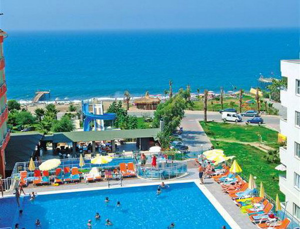 | Мы отдыхали здесь в конце сентября 2007 года, всей семьей с дочками 3-х и 9-ти лет. Я не могу сказать ничего плохого об этом отеле. Новый, чистенький, аккуратный. Номера светлые, уютные. Персонал вежливый и гостеприимный, доброжелательный, вечно улыбающийся взрослым и детям. Не было дня, что бы младшенькую не «потрепали» за щечку и не погладили по головке. Номера убирали всегда в одно и тоже время, старались подобрать его так, чтобы мы были либо на пляже, либо у бассейна. За оставленный на столике доллар горничная каждый раз удивляла детей диковинными «шедеврами» из покрывал и, возвращаясь в номер, они гадали, что их ждет сегодня лебедь или цветок… Утром мы ходили на пляж (конечно в воду входить и выходить нужно осторожненько - крупные камни на дне), но какой чистоты вода!!! Тут же не большая детская игровая площадка, для детей, но не старше 4 лет. Мини-бар, волейбольная площадка и душ, который желательно принять, дабы не «тащить» гальку на территорию отеля. А во второй половине дня детвора плескалась в бассейне. Никаких проблем с лежаками. Никто их в 4 утра не занимал!!! Булочки и напитки, которые выносили прямо к бассейну, проголодавшиеся за день дети съедали моментально и снова погружались в голубую «пучину». Питание отличное, особенно вечерний ужин и блюда приготовленные на огне на открытом воздухе. Количество разнообразных салатов, приправ, соусов может даже поставить в тупик. Главное всего брать понемногу, а вот когда распробуете что вам больше по вкусу – вперед! Десерты… Тортики, пирожные, желе… Да, здесь не похудеешь!!! Фрукты в основном арбузы, дыни, апельсины, но каждый день и все свеженькое, аппетитное. Мясо – ежедневно. Кстати, советуем попробовать запеканку, все её обходят стороной, а в ней очень много мяса. А рецепт турецкого омлета я привезла домой и изредка балую им своих домочадцев, кстати, его готовят прямо в вашем присутствии, конечно, требуется немного терпения, ведь там, где вкусные блюда сразу образуется не большая очередь (4-5 человек). Никто не выхватывает тарелку, пока вы не поели, но и грязную посуду убирают очень быстро и аккуратно. Конечно, мы с территории отеля не выбирались на какие-либо экскурсии, кроме обычных пеших прогулок и индивидуального «чёса» за сувенирами (просто это тяжеловато с трехлетним ребенком). Турецкая баня. Честно говоря, это не описать словами. Нужно просто попробовать. Пилинг, пенный массаж, потом маска, массаж с ароматическими маслами… Ощущение, что попал в рай. Раз в неделю выступают местные коллективы с национальными танцами. Зрелище не обычное. Анимация на уровне - русская девушка вместе с коренным юношей не оставляли в покое зрителей не только вечером, но и в течение всего дня… Жаль, что в это время года детворы было маловато, но, несмотря на это дочки не скучали, особенно любили детскую ежедневную дискотеку. Разве может себе отказать хоть одна девчонка потанцевать и покрасоваться на сцене перед такими благодарными зрителями? Конечно, если не в чем не участвовать, и тупо набивать себе «на халяву» пузо едой, возможно, вам и будет здесь скучно, но разве можно устоять и не принять участия в грандиозном танце-гимне отеля!!! Этим массовым зрелищем заканчивалась каждая дискотека. Ведущие заводили всех!!! Можно еще очень много написать хорошего и теплого про этот отель. Я знаю мы вернемся, а пока посоветов