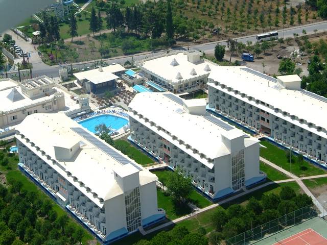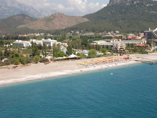в 62 км от аэропорта г. Анталья, в 7 км от г. Кемер, в поселке Кириш, в 100 м от собственного пляжа. Территория отеля разделена дорогой c подземным переходом.
