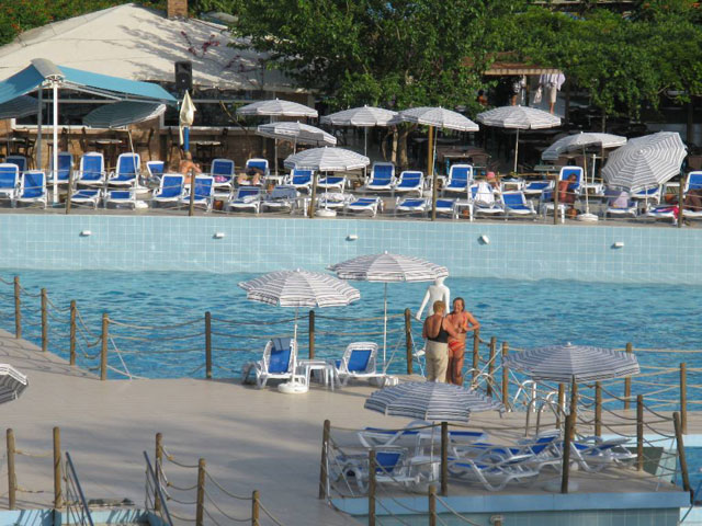 | Были на отдыхе в конце сентября с ребенком (два с половиной года). Погода порадовала, море тоже, а вот отель не очень. Плюсы: еда целый день, разнообразна, есть меню для детей, анимация хорошая, детский клуб - супер, воспитатели внимательные, детская площадка ухожена, много зелени по всей территории отеля, много бесплатных напитков, магазинчики рядом, много развлечений для увлекающихся разными видами спорт, пенное шоу очень прикольное, турецкие танцы живота тоже. Минусы: отвратительное отношение к русским (нас вообще послали на х... при ребенке), убирают в номерах нормально, но постоянно что -то забывают добавить - то шампунь, то бумагу, то полотенце, на обед и ужин в столовой собирается очередь, столики надо заранее занимать, вкусное мясо на гриле дают всего по 2-3 кусочка на человека, вечером освещение не сильное, поэтому берегите детей - упасть на скользком кафеле или стукнуться о притолоку - плевое дело (мы из-за этого с ребенком пролежали два дня под капельницей в турецкой больнице), гостиничные фотографы очень дорогие - сначала нафотографируют, потом такую цену скажут - мама не горюй, вода в бассейнах немного прохладная. Вывод: кому то понравиться отдых, кому то нет, молодежь будет скучать, а вот с детьми сюда - самое милое дело, большая компания мамочек с колясками, не обращайте внимания на огнор со стороны обслуживающего персонала - это уже не изменишь, но и спуску не давайте - сразу идите к управляющему отеля. |
