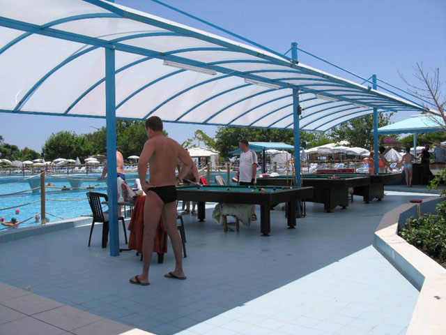 | Если вас впечатляют водные горки, работающие по расписанию, детский стол с картошкой фри, с которого, во время общего обеда, спокойно воруют кошки и тут же поедают, то это отель для вас. Одним словом - пионерлагерь`68. Каждый день одна и та же музыка. Детские машинки - за деньги (1,50 евро за пару минут). Еда однообразная. Алкоголь - только местный. Несмотря на то, что отель позиционирует себя как UAI - любой нормальный коктейль - за деньги. Воняет свалкой. Каждый божий день!!! Не говоря уже о всяких мелочах: не закрепленном душе, не охлаждающем мини-баре и можно перечислять до бесконечности! |